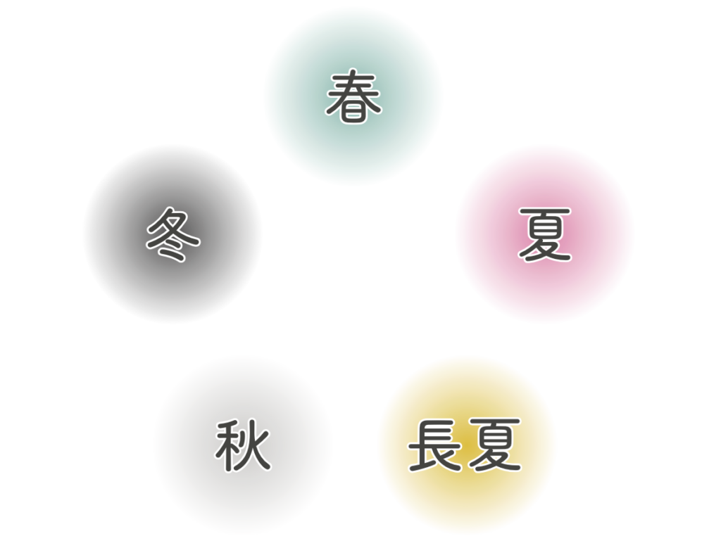 日本には美しい四季がありますが、薬膳では湿気の多い梅雨や長雨のシーズンを「長夏」とし、5つの季節(五季)で考えます。季節の移ろいとともに変化する子どもの体に合わせて、旬の食材を選びましょう。